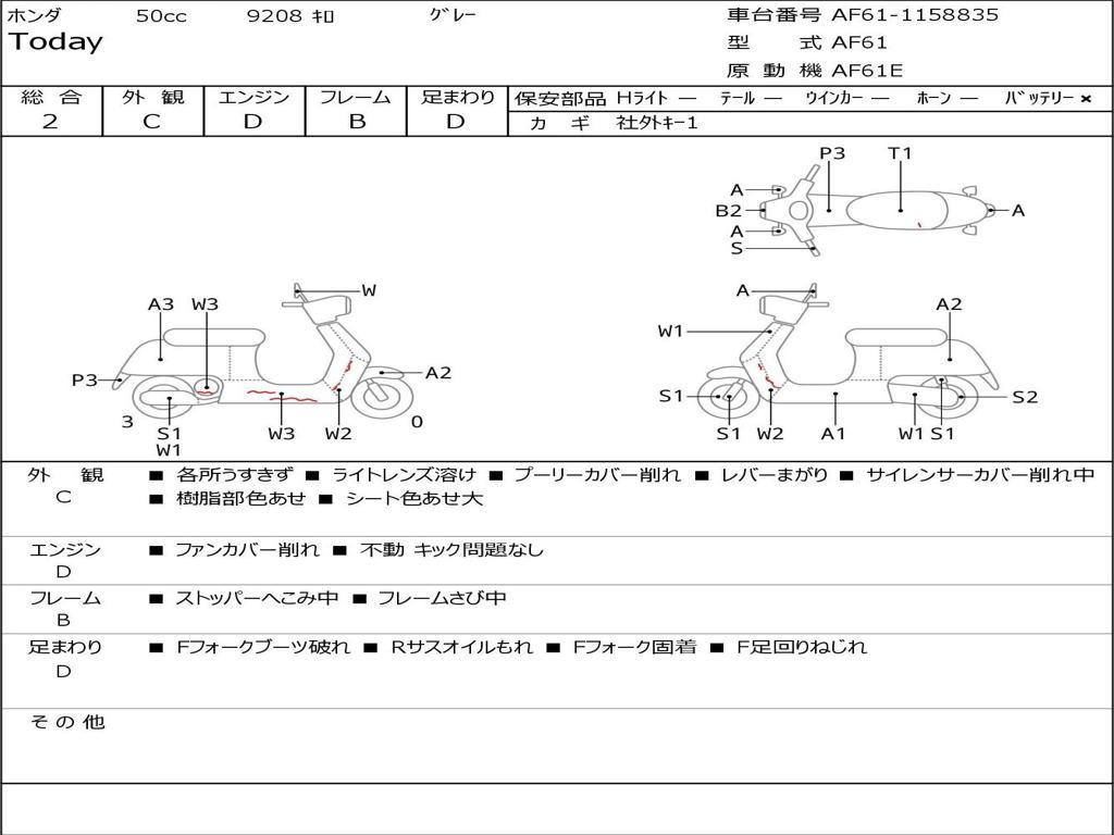 | Номер рамы / VIN | AF61-1158835 |