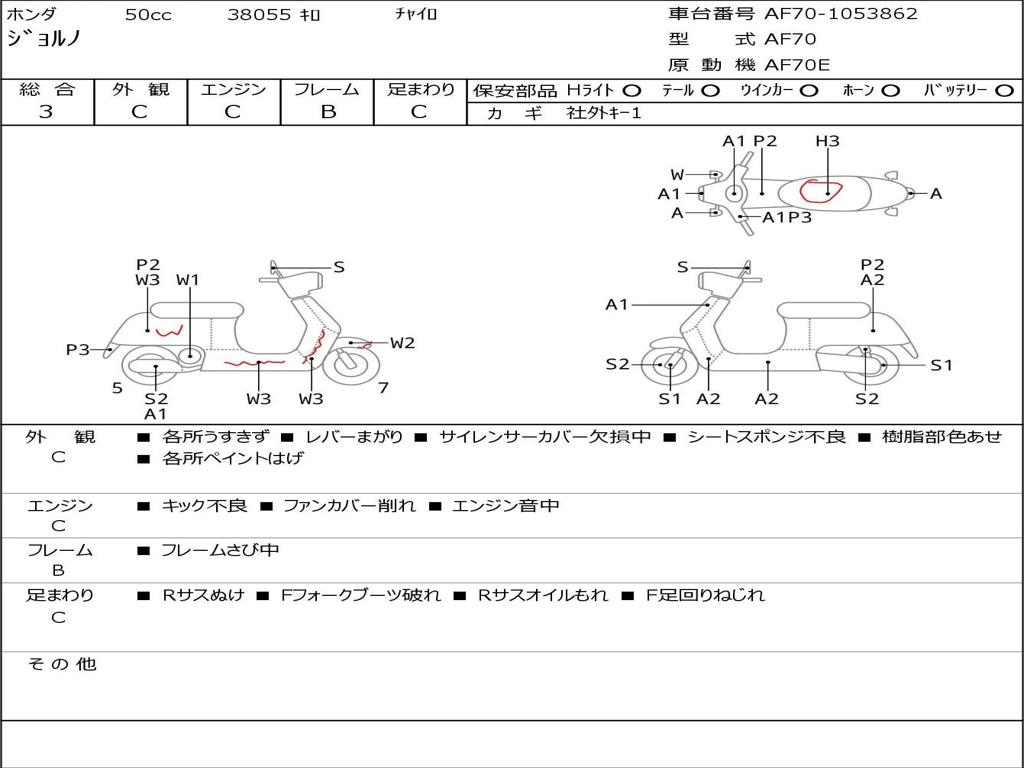 | Номер рамы / VIN | AF70-1053862 |