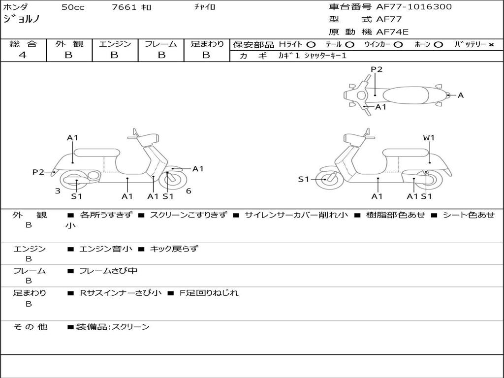 | Номер рамы / VIN | AF77-1016300 |