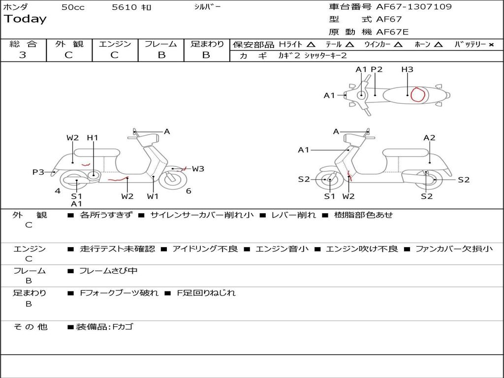 | Номер рамы / VIN | AF67-1307109 |