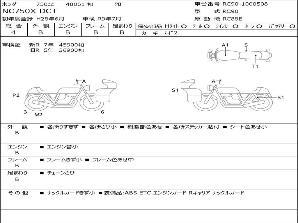 | Номер рамы / VIN | RC90-1000508 |