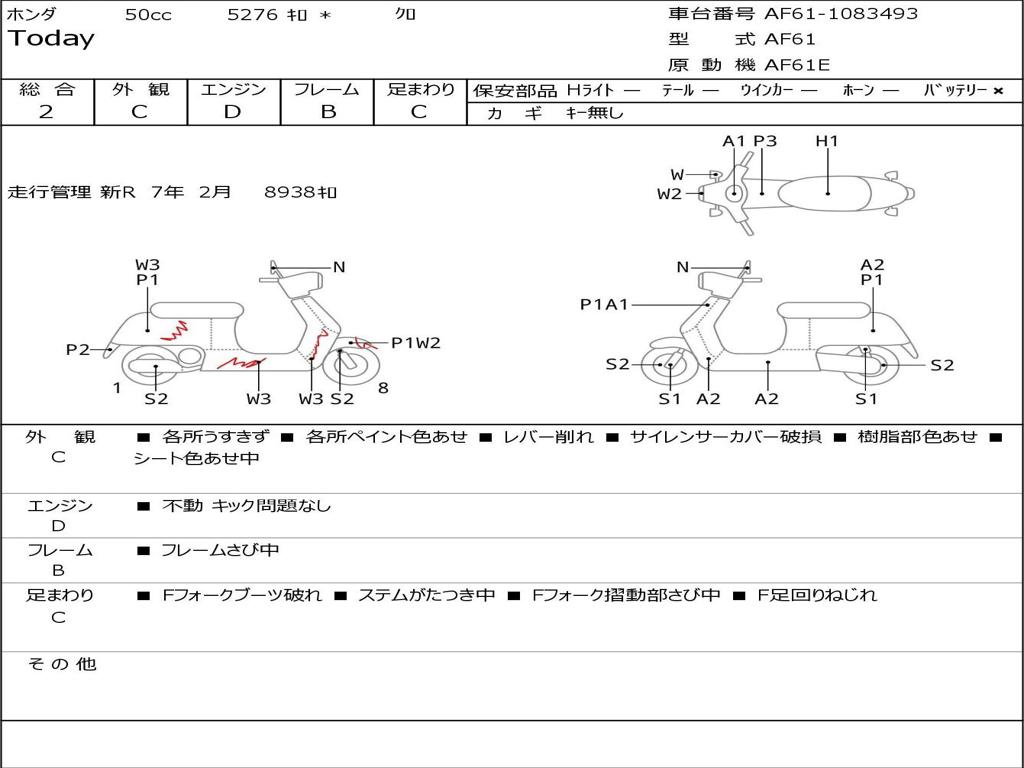 | Номер рамы / VIN | AF61-1083493 |