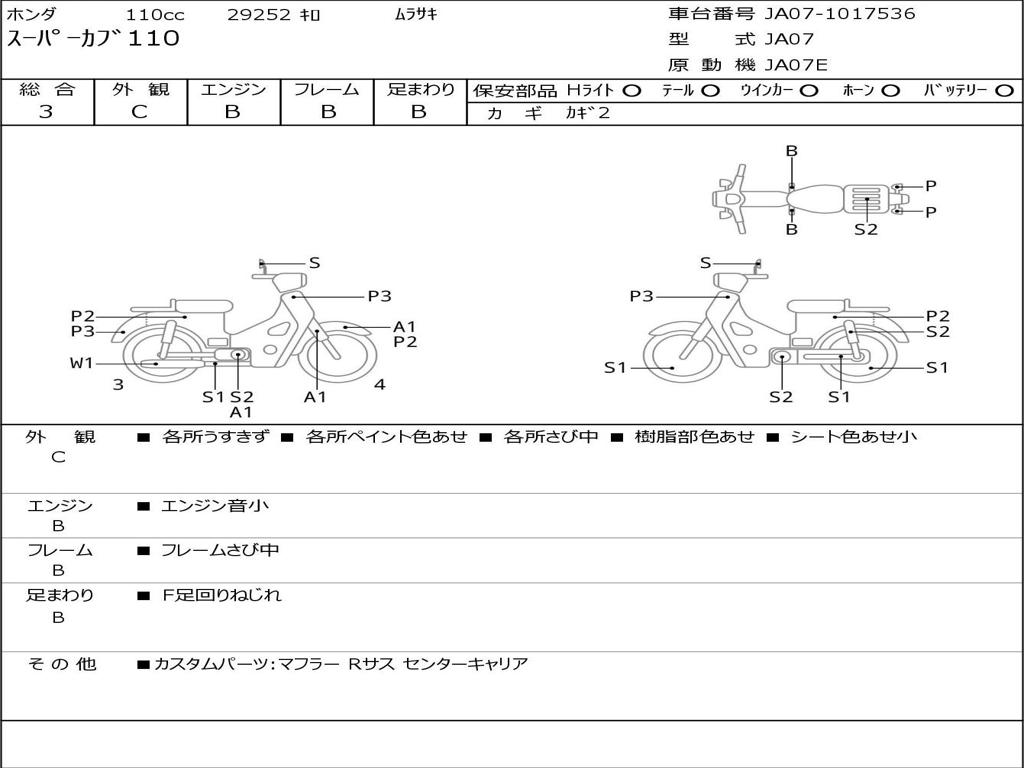 | Номер рамы / VIN | JA07-1017536 |
