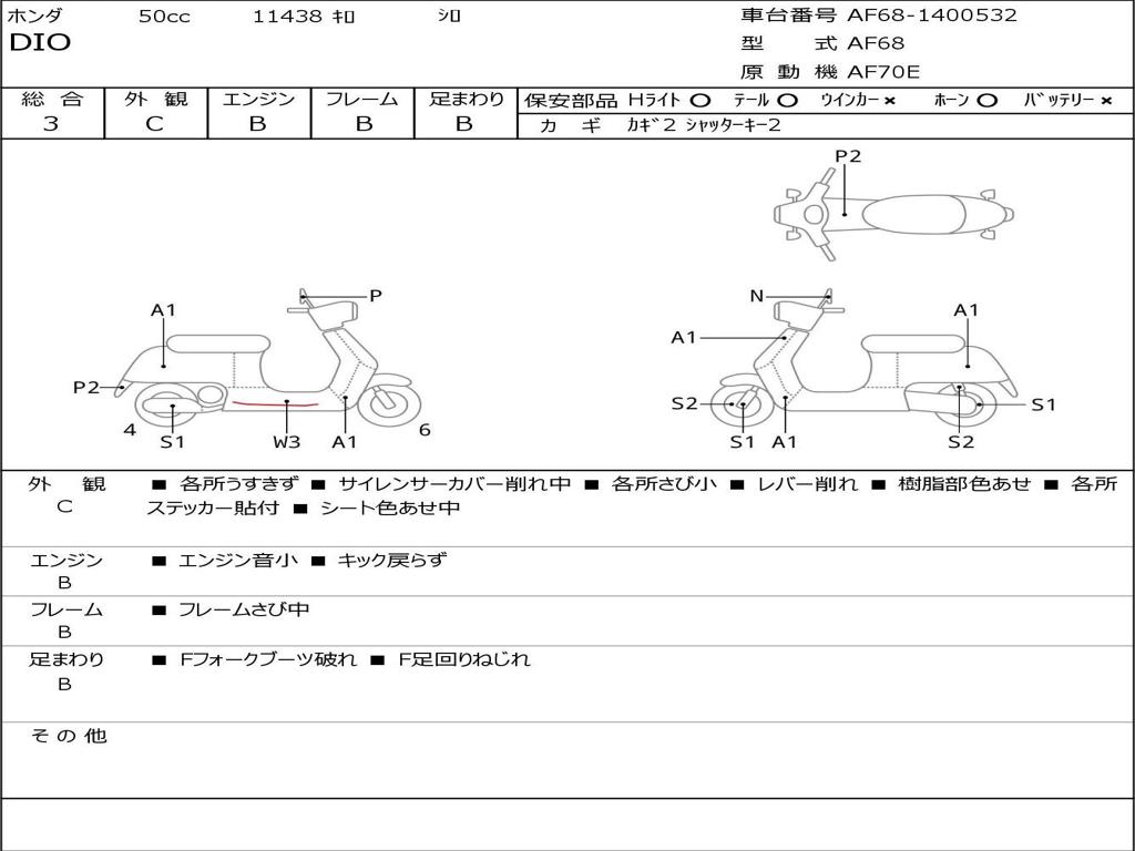 | Номер рамы / VIN | AF68-1400532 |