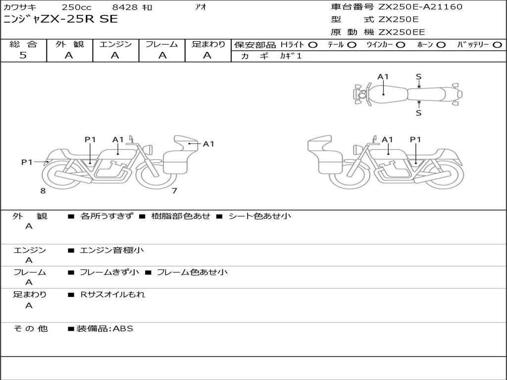 | Номер рамы / VIN | ZX250E-A21160 |