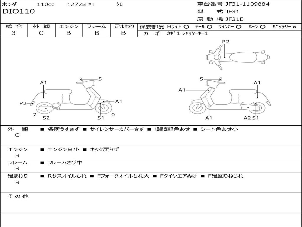 | Номер рамы / VIN | JF31-1109884 |