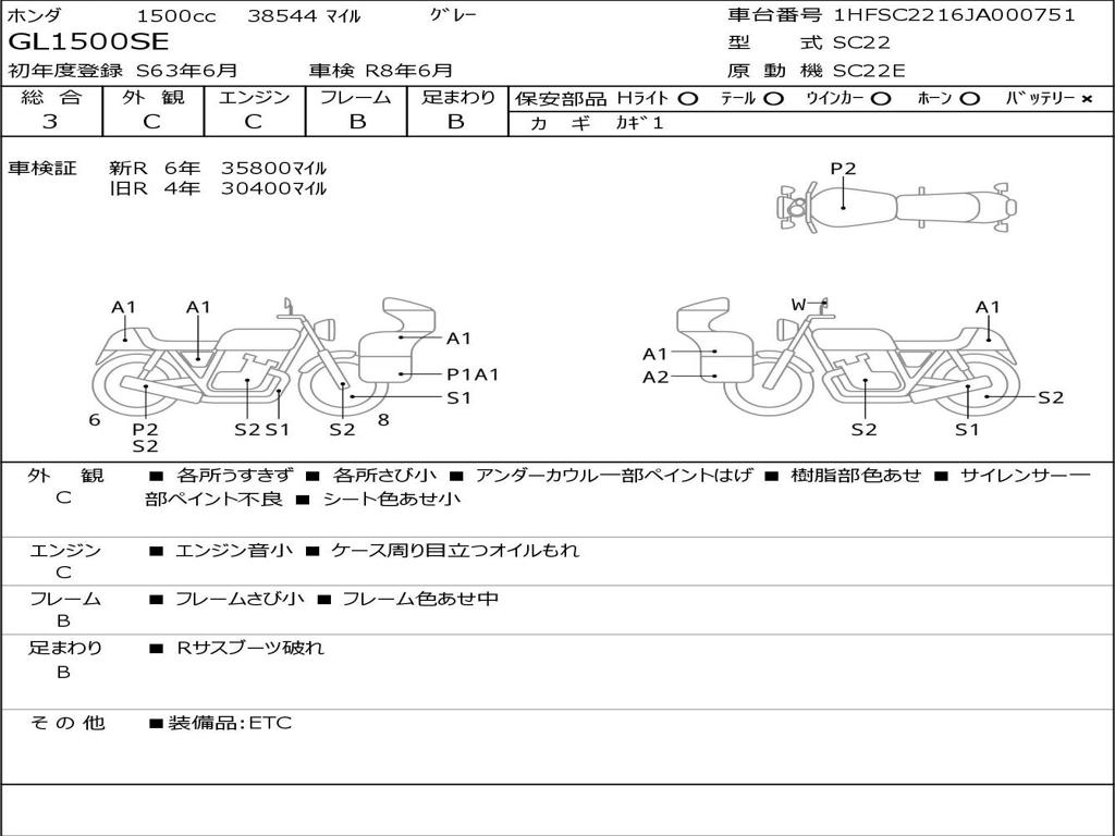| Номер рамы / VIN | 1HFSC2216JA000751 |