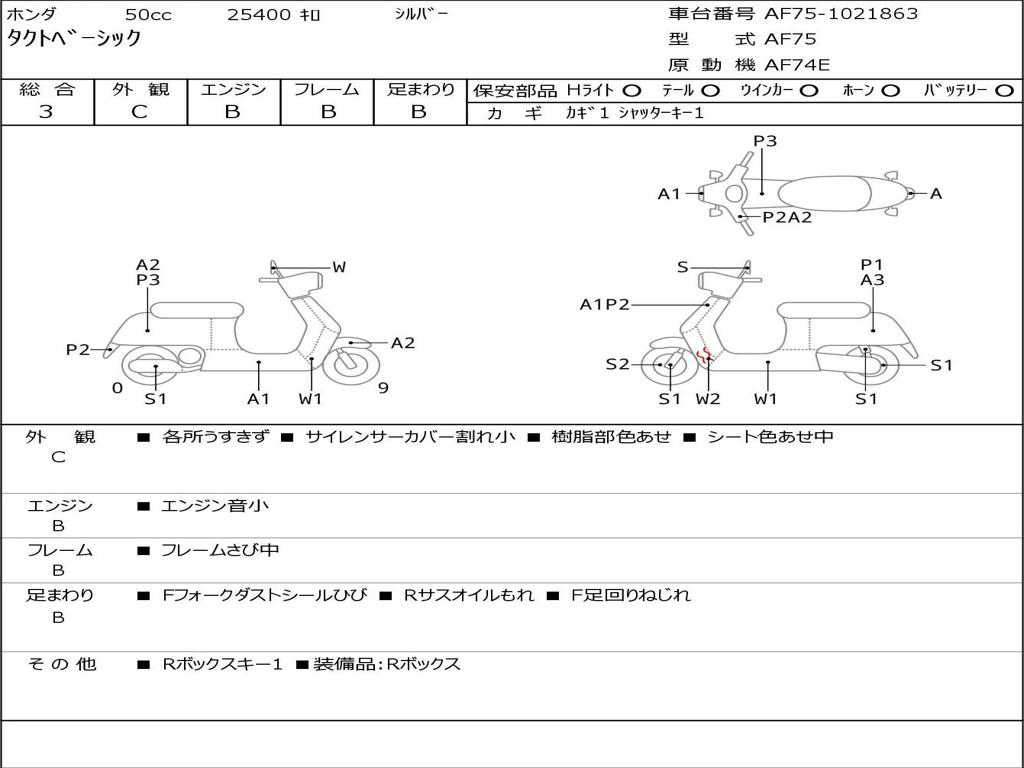 | Номер рамы / VIN | AF75-1021863 |