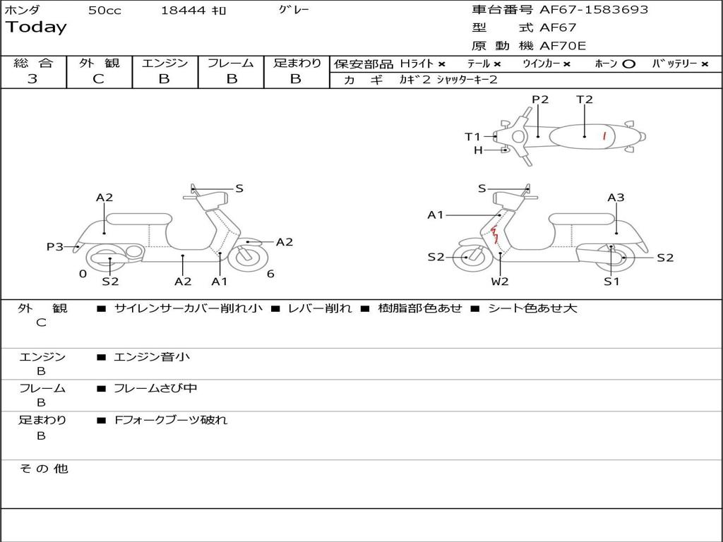 | Номер рамы / VIN | AF67-1583693 |