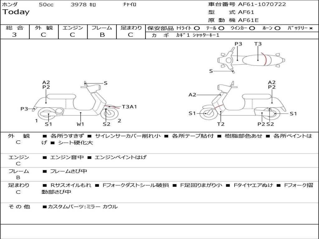 | Номер рамы / VIN | AF61-1070722 |