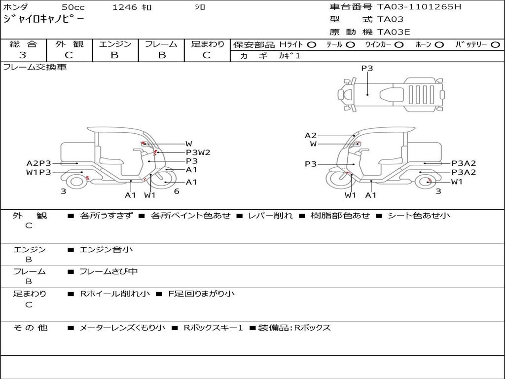 | Номер рамы / VIN | TA03-1101265H |