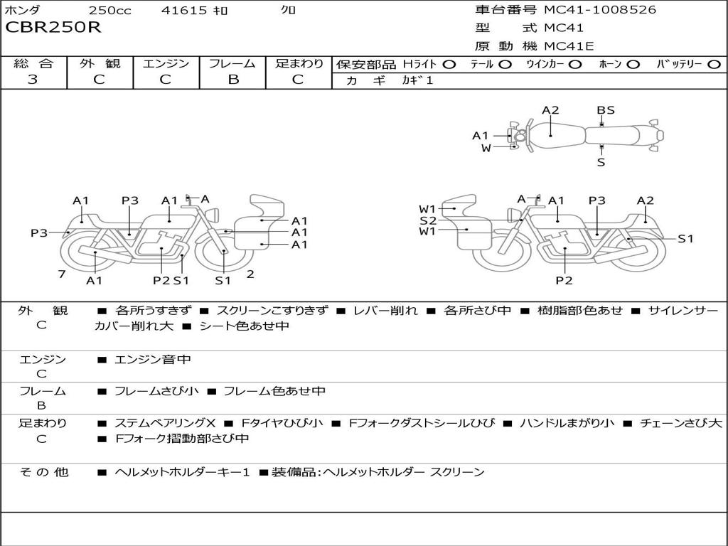 | Номер рамы / VIN | MC41-1008526 |
