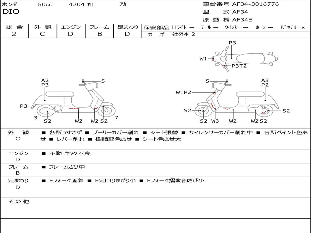 | Номер рамы / VIN | AF34-3016776 |