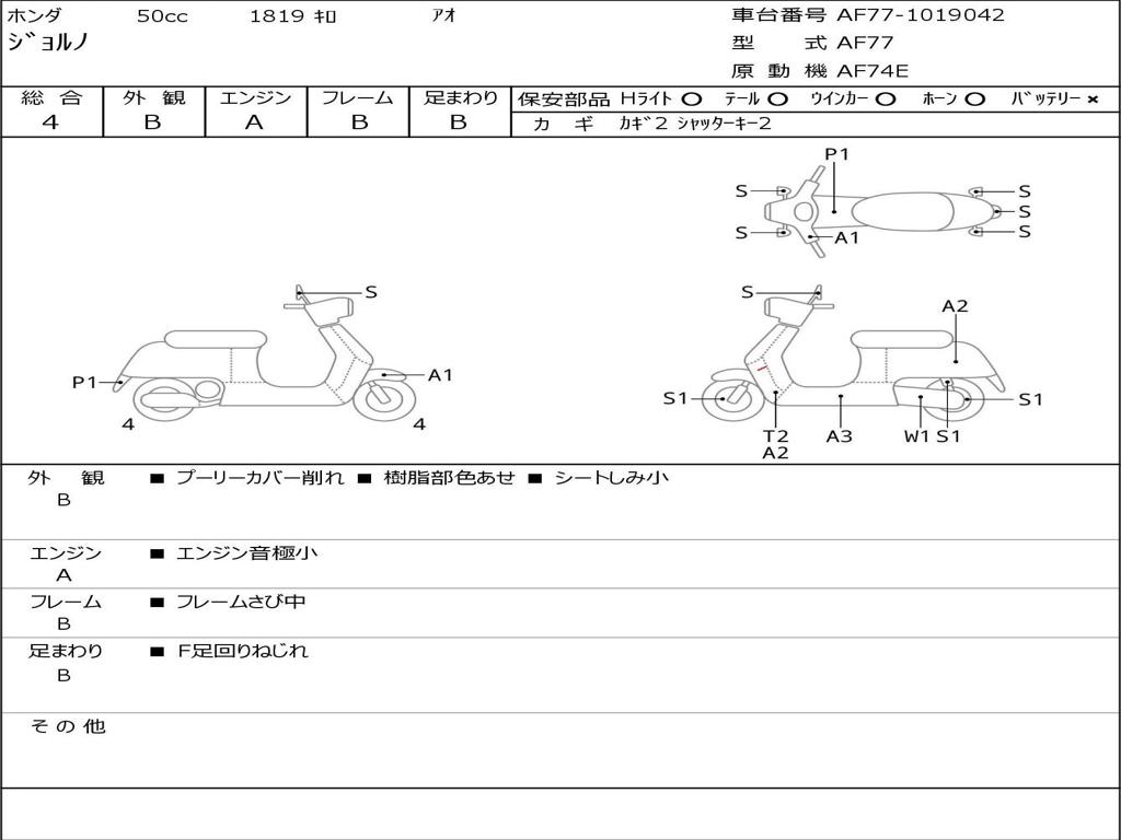| Номер рамы / VIN | AF77-1019042 |