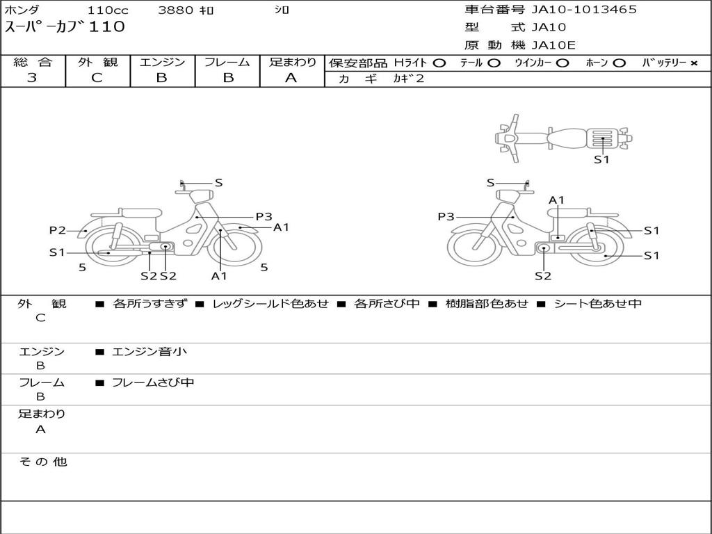 | Номер рамы / VIN | JA10-1013465 |