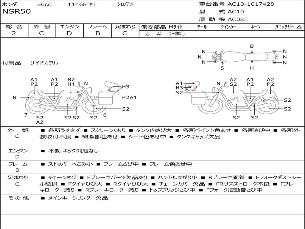 | Номер рамы / VIN | AC10-1017428 |