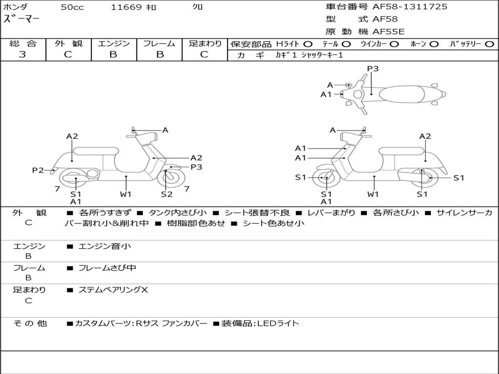 | Номер рамы / VIN | AF58-1311725 |