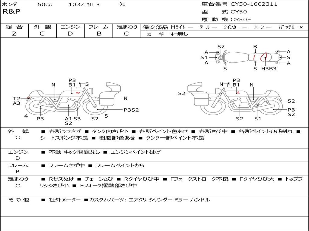 | Номер рамы / VIN | CY50-1602311 |