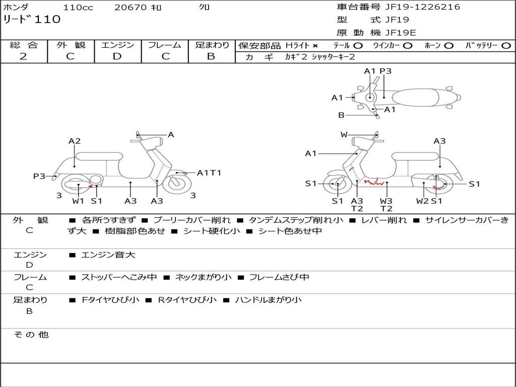 | Номер рамы / VIN | JF19-1226216 |