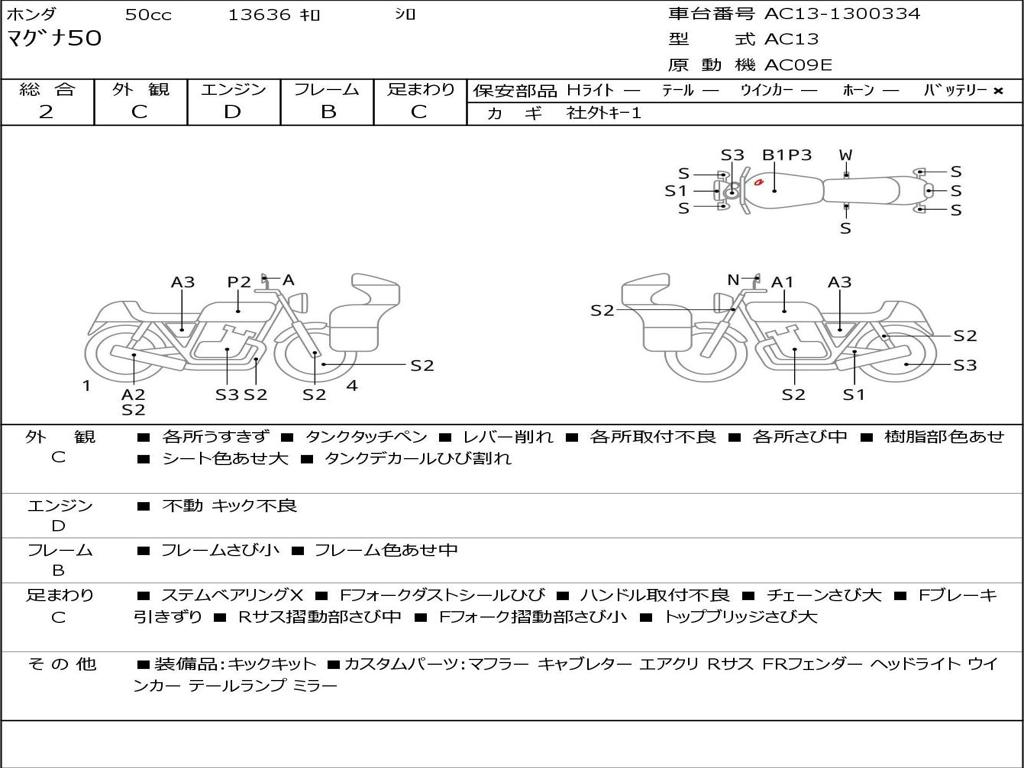 | Номер рамы / VIN | AC13-1300334 |