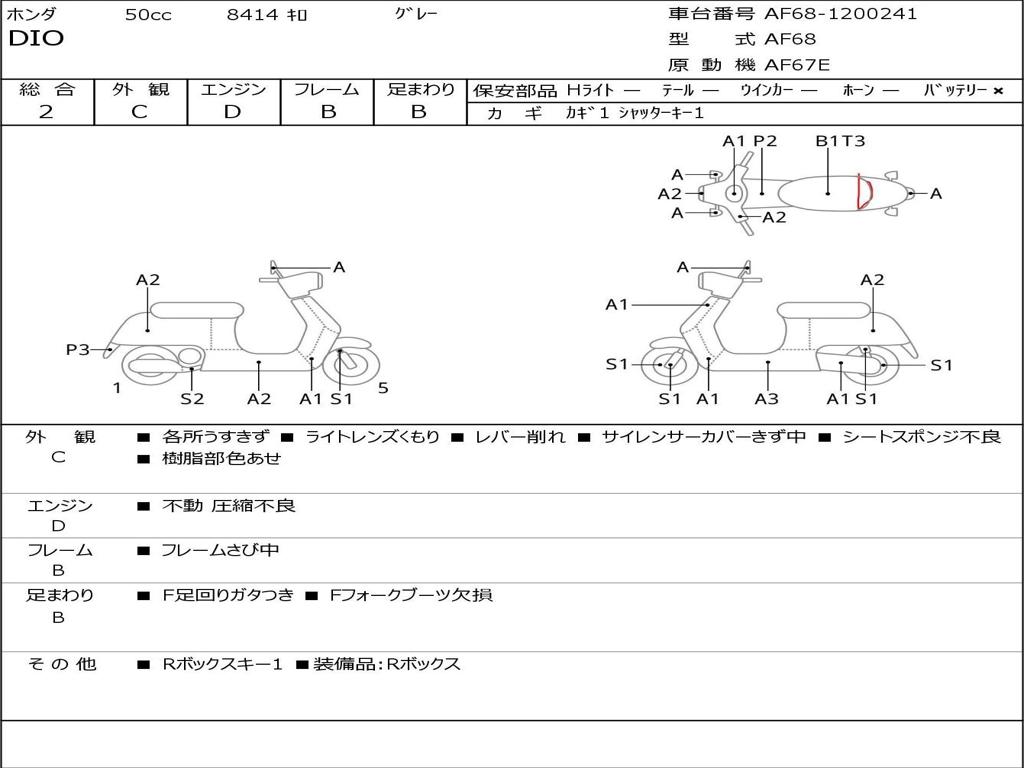 | Номер рамы / VIN | AF68-1200241 |