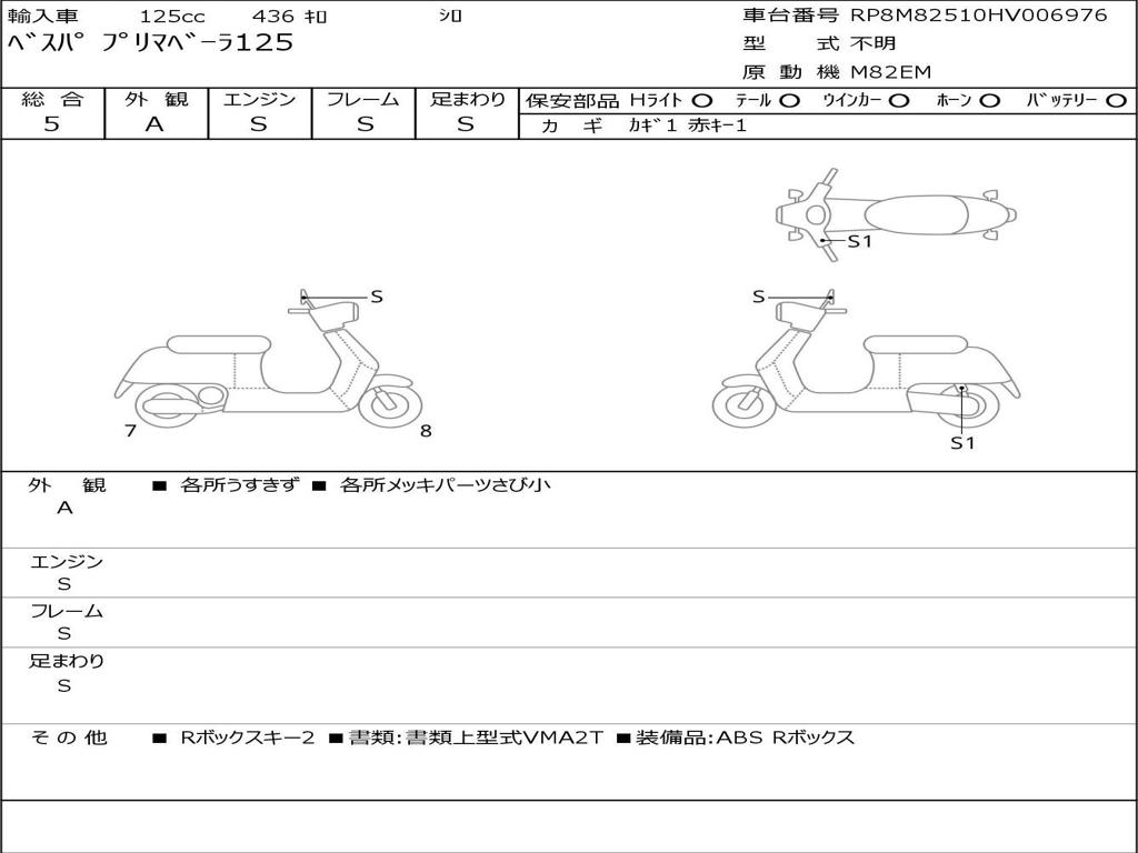 | Номер рамы / VIN | RP8M82510HV006976 |