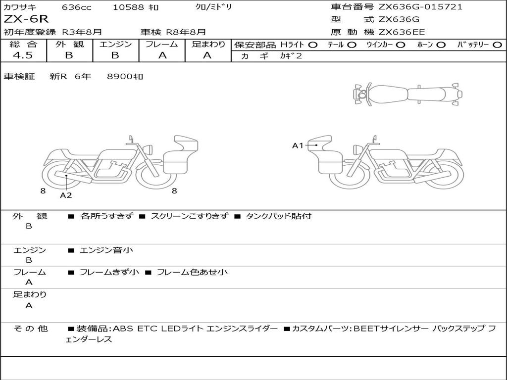 | Номер рамы / VIN | ZX636G-015721 |