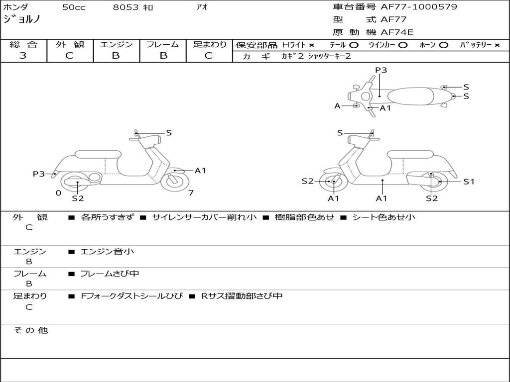 | Номер рамы / VIN | AF77-1000579 |