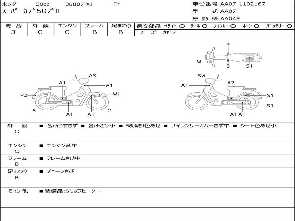 | Номер рамы / VIN | AA07-1102167 |