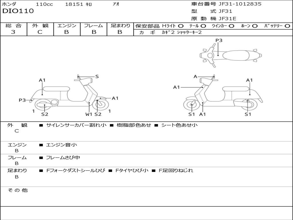 | Номер рамы / VIN | JF31-1012835 |