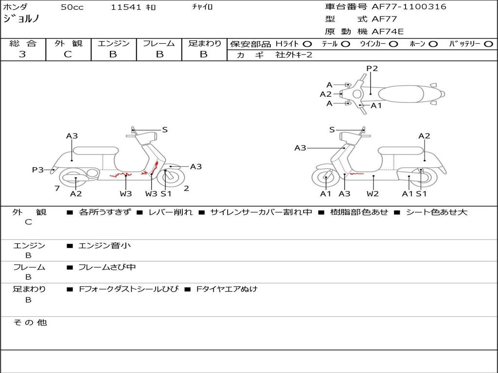 | Номер рамы / VIN | AF77-1100316 |