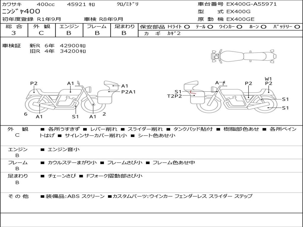 | Номер рамы / VIN | EX400G-A55971 |