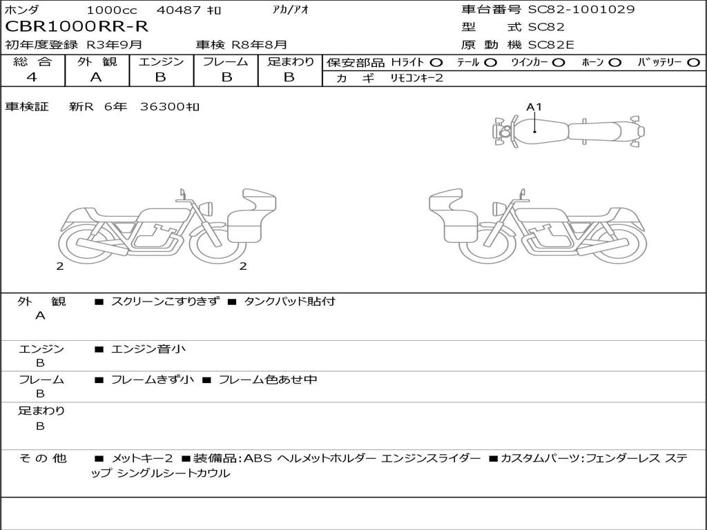 | Номер рамы / VIN | SC82-1001029 |