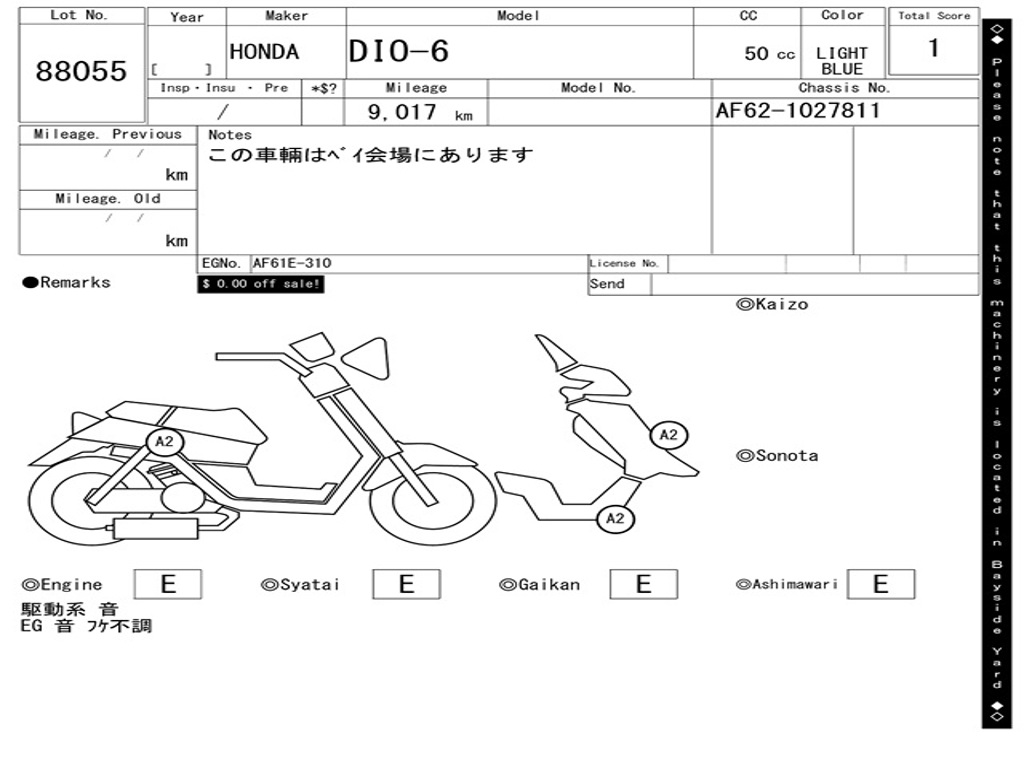| Аукцион | ARAI BAYSIDE |