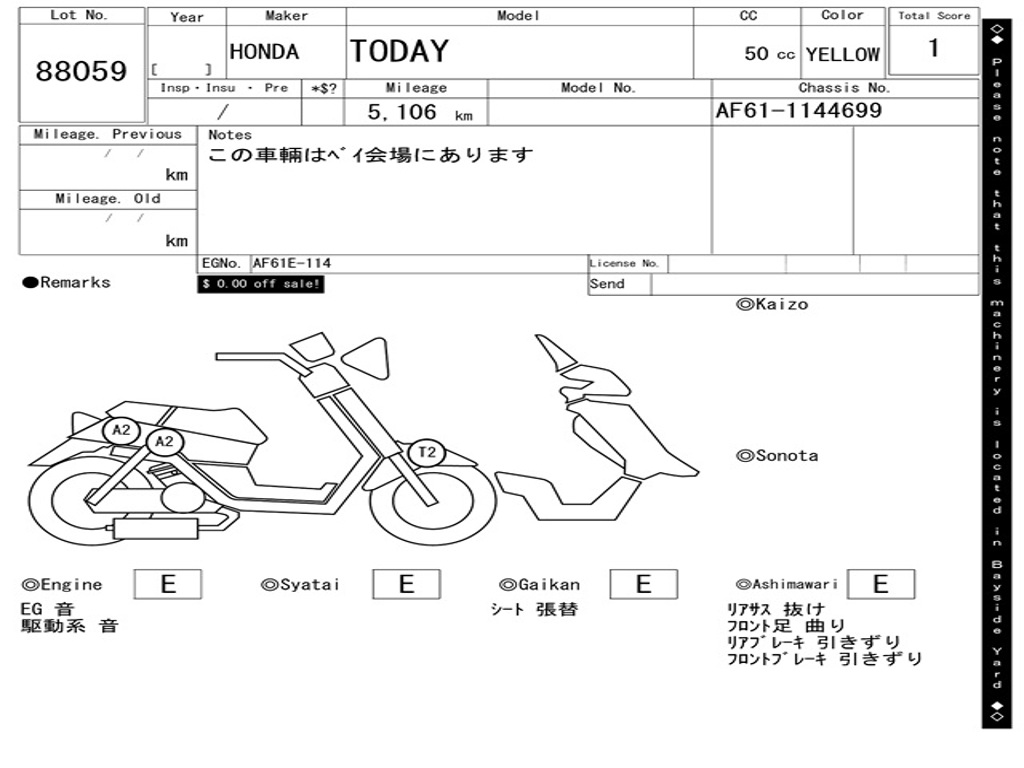 | Номер рамы / VIN | AF61-1144699 |
