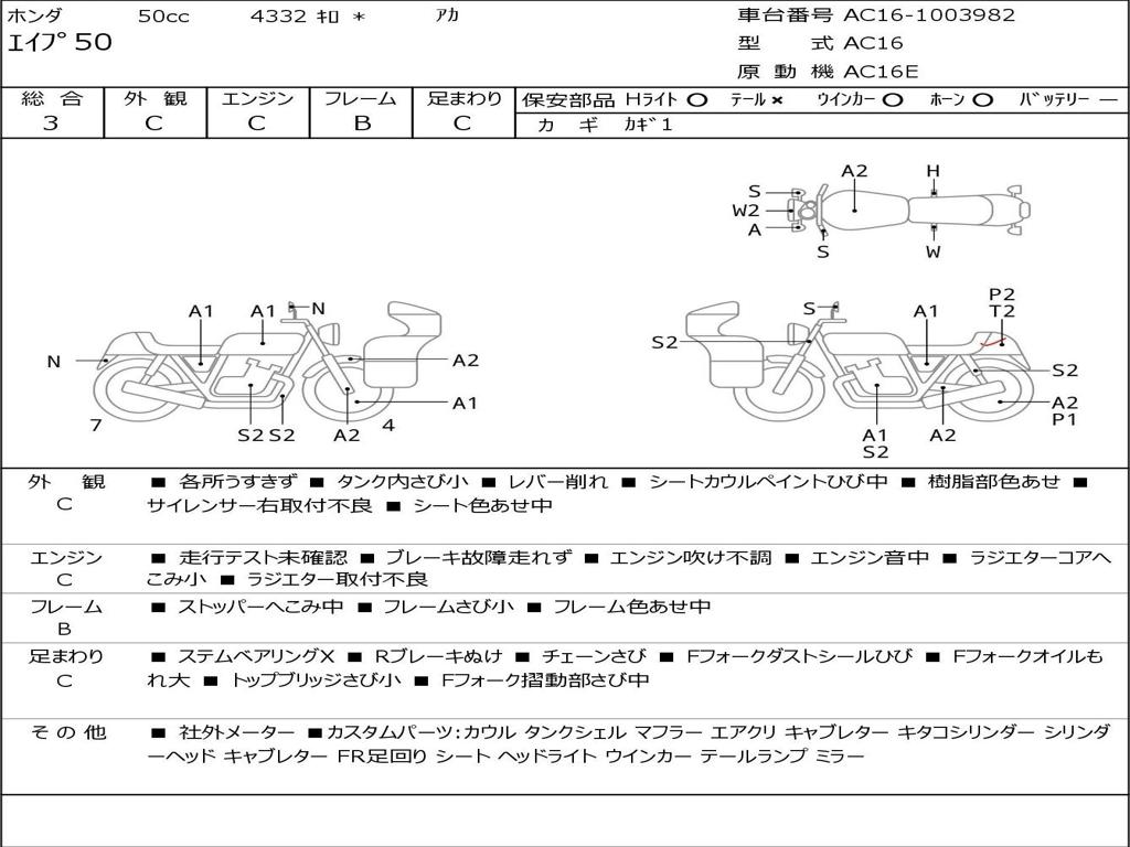 | Номер рамы / VIN | AC16-1003982 |