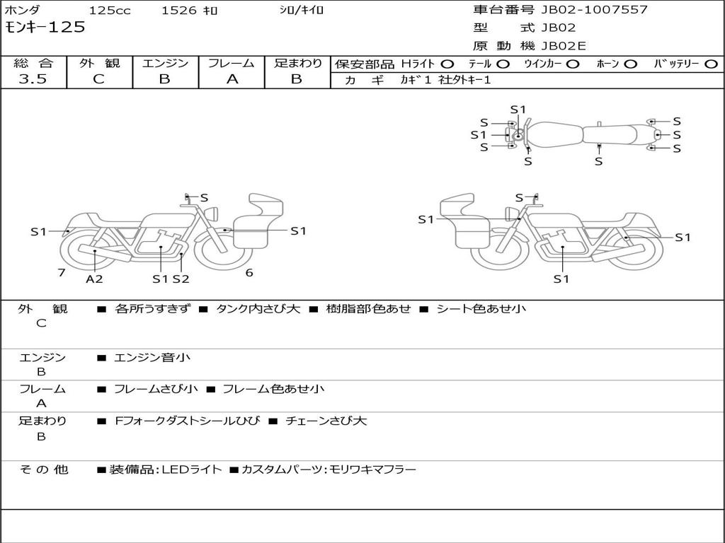 | Номер рамы / VIN | JB02-1007557 |