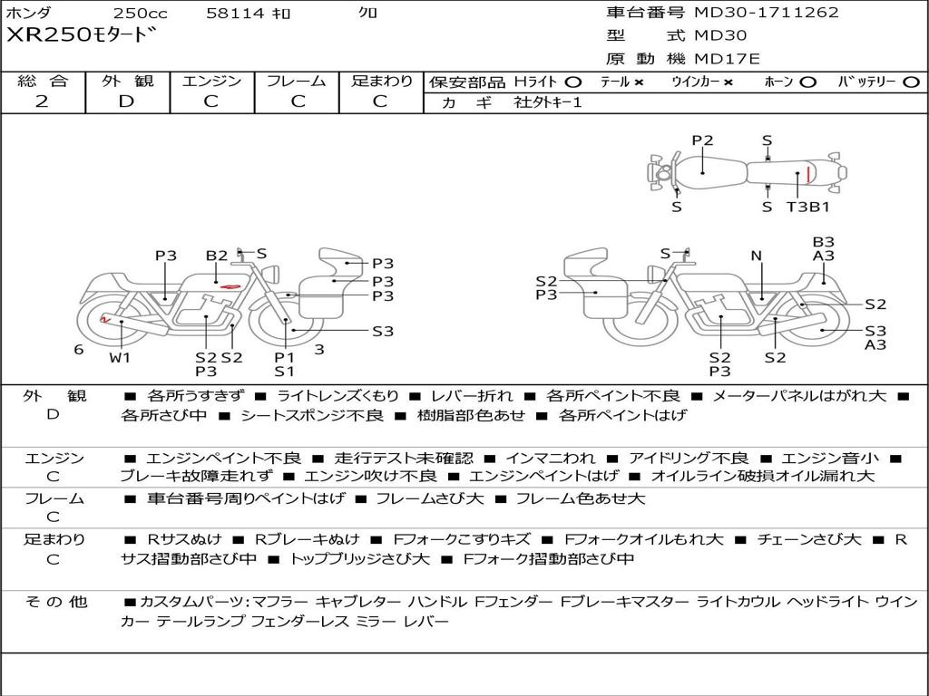 | Номер рамы / VIN | MD30-1711262 |