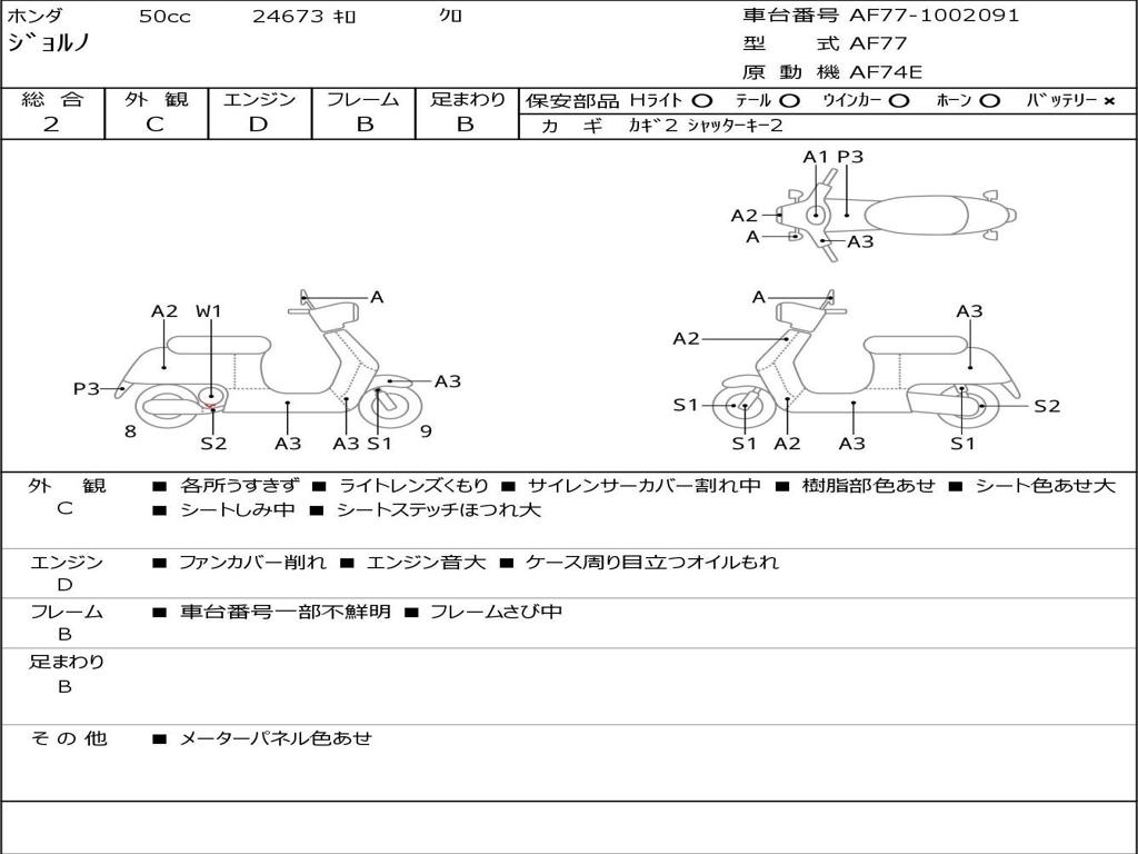 | Номер рамы / VIN | AF77-1002091 |