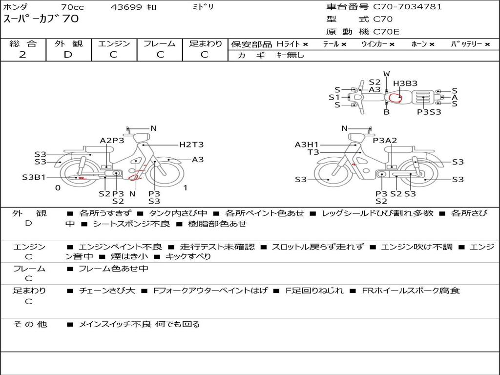 | Номер рамы / VIN | C70-7034781 |
