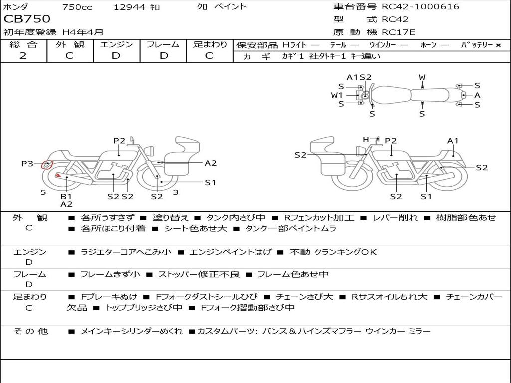 | Номер рамы / VIN | RC42-1000616 |