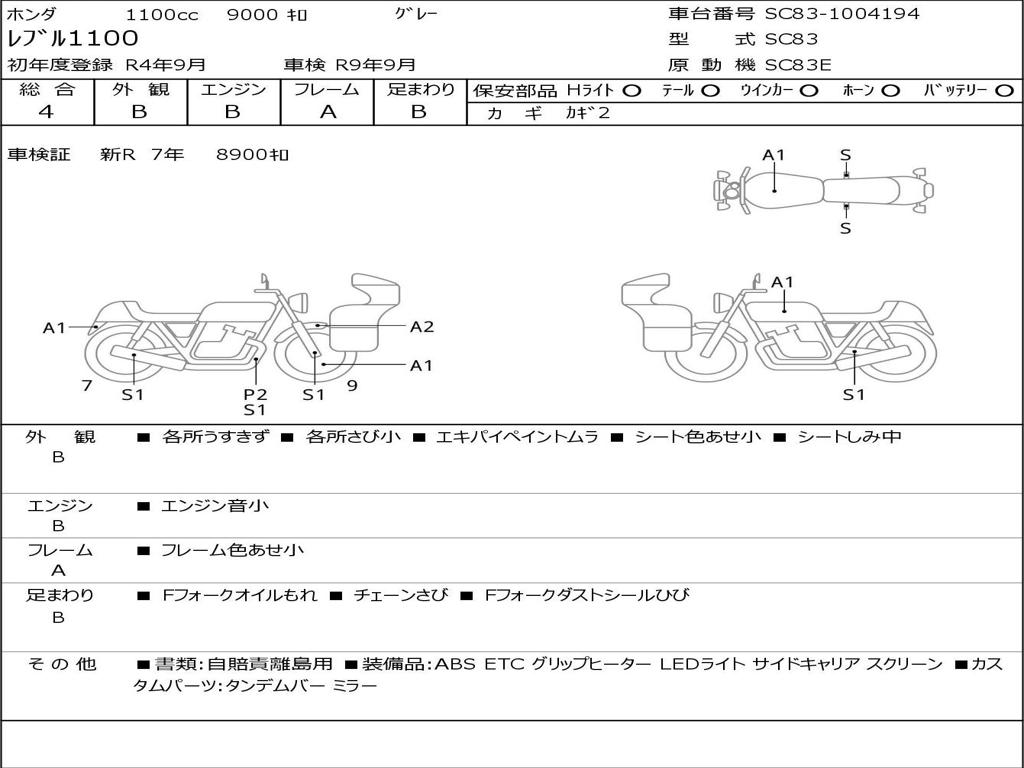 | Номер рамы / VIN | SC83-1004194 |