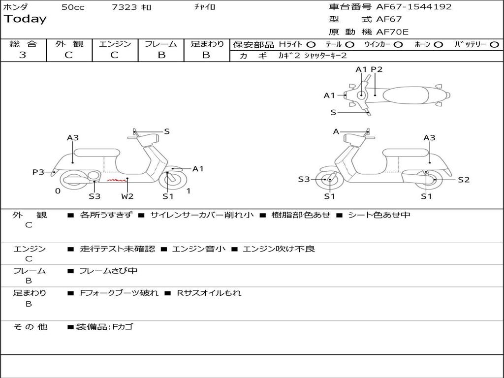 | Номер рамы / VIN | AF67-1544192 |