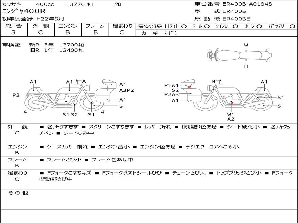 | Номер рамы / VIN | ER400B-A01848 |