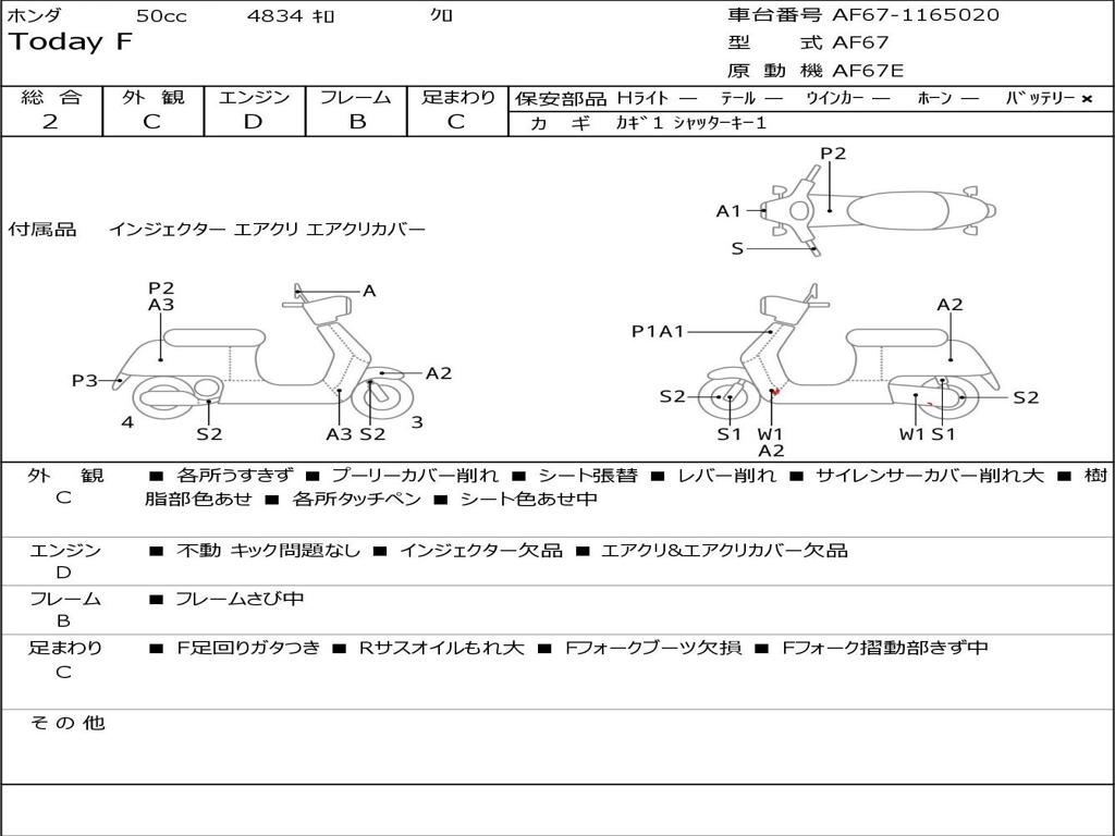 | Номер рамы / VIN | AF67-1165020 |