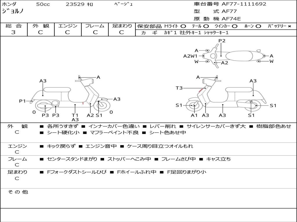 | Номер рамы / VIN | AF77-1111692 |