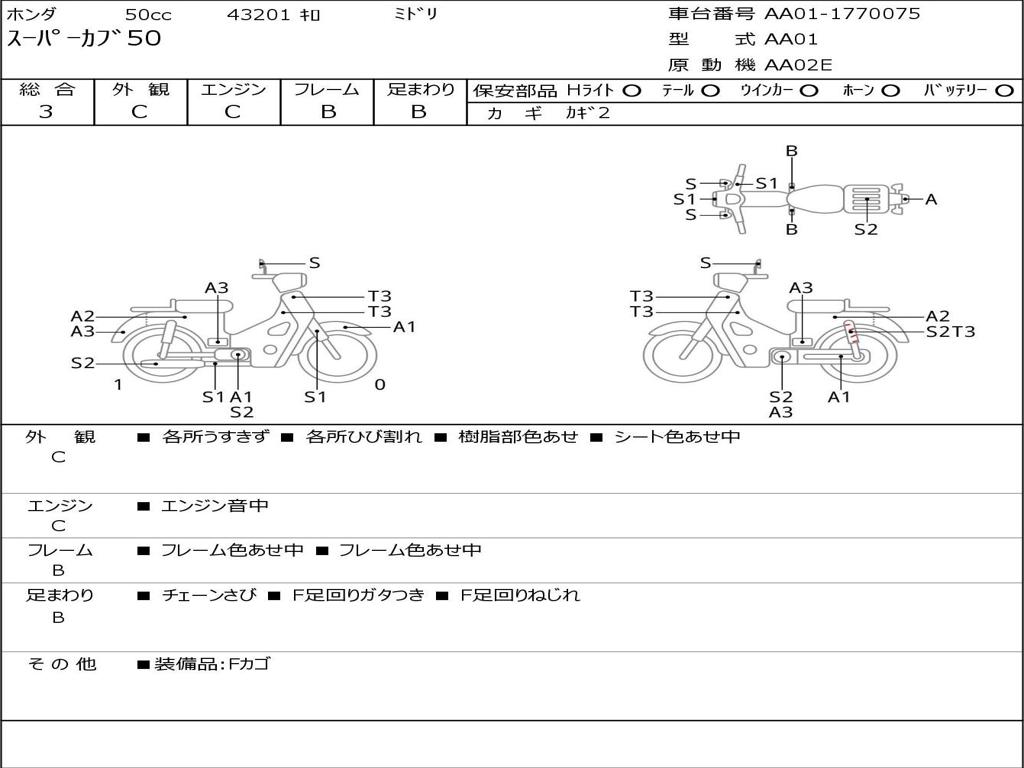 | Номер рамы / VIN | AA01-1770075 |