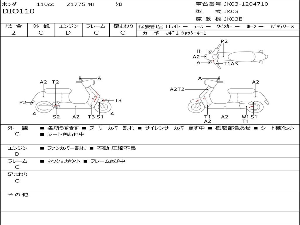 | Номер рамы / VIN | JK03-1204710 |