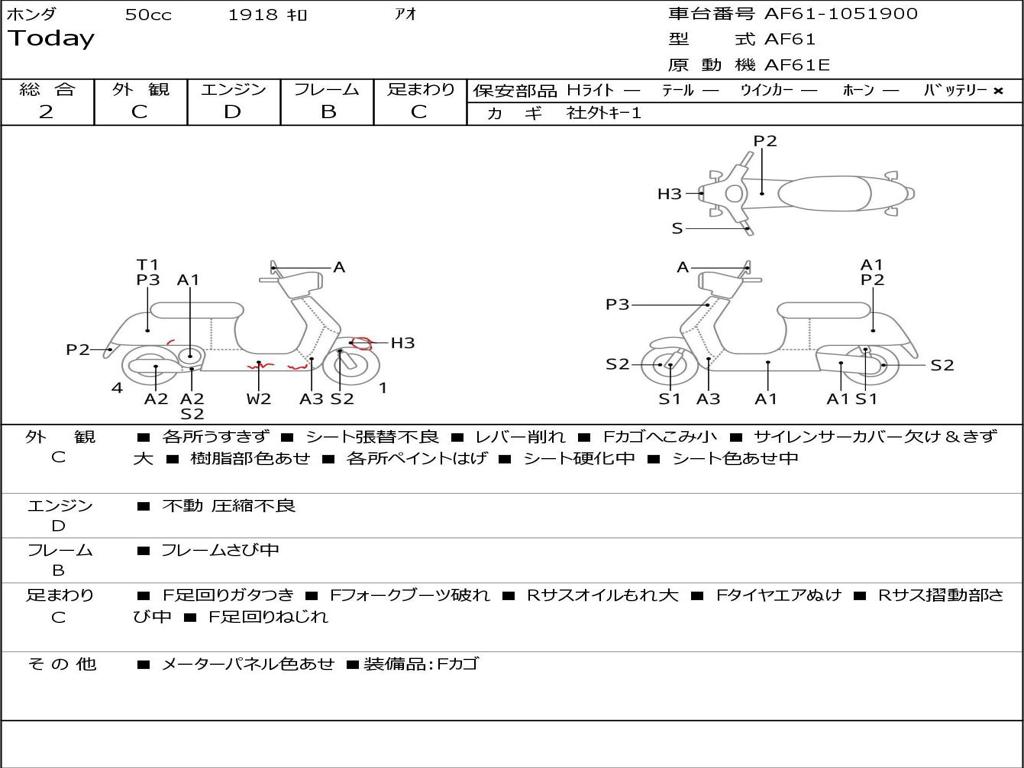 | Номер рамы / VIN | AF61-1051900 |