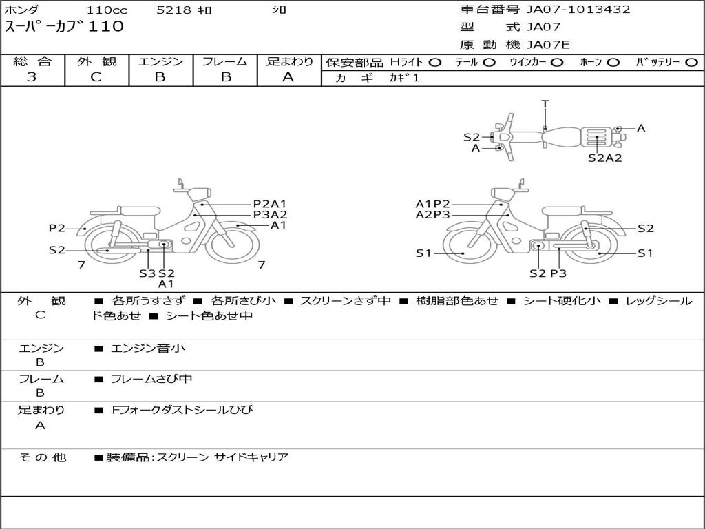 | Номер рамы / VIN | JA07-1013432 |